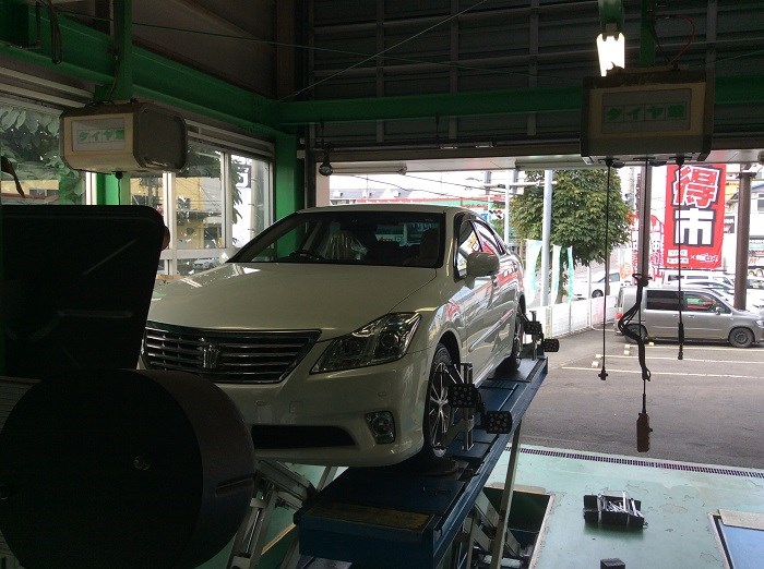 本日は、クラウンのタイヤ交換、TPMSの取り付け、防錆コーティング、アライメントを行いました。