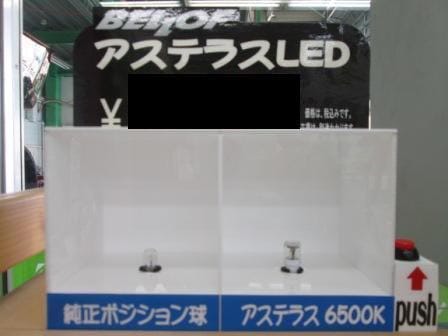 ポジション球は、純正球と比較出来るように、サンプルでの展示もしています。