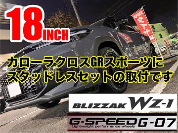 カローラクロスGRスポーツに18インチの スタッドレスタイヤとホイールの取付です 装着タイヤホイールはこちら ブリザックWZ-1 225/50R18 こだわりのホイールは G-SPEED G-07 18x7.5 48 5-114 カラーはメタリックブラック アースグレーにブラックメタリックの足元で 純正さをいかしたマッチングにし...