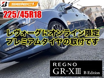 レヴォーグにプレミアムタイヤの オンライン限定モデルの取付です 装着タイヤはこちら レグノGR-XIII B Edition 225/45R18 通常モデルとの違いは サイドウォールのデザインです 漆黒の中から浮かび上がるブランドロゴ 黒の深みが生むプレミアムなデザインされ サイズも3サイズのみの販売に限られて...