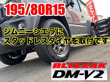 ジムニーシエラに 純正サイズでスタッドレス取付です 装着タイヤはこちら 4x4 SUV専用のブリザックDM-V2 サイズは195/80R15 ホイールは純正ホイールを使用 夏タイヤは別のホイールを装着しております ジムニーシエラで雪道走行… なんとも楽しそうですね ご来店ありがとうございました