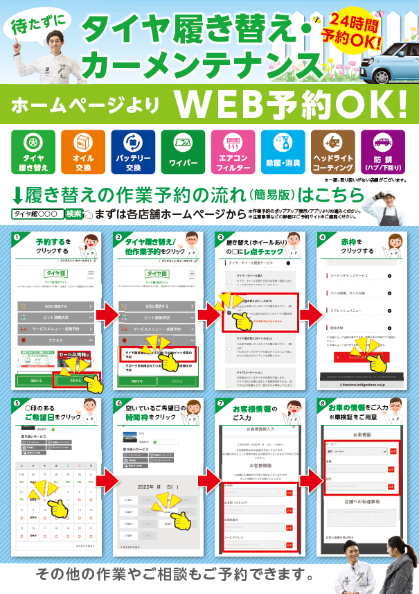 タイヤ館で「車検」を取り扱っていることをご存じですか? タイヤだけではなく、オイルやバッテリーの交換など、メンテナンスも幅広く手掛けており、 車検も安心してタイヤ館におまかせいただくことができます! タイヤ館で車検を受ける3つのメリット! <メリット その1>交換部品がお得! タイヤ...