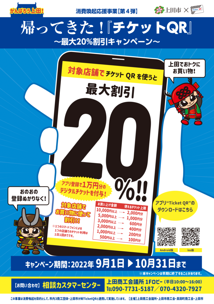 「上田チケットQR」残すところ5日です。 ポスト 2022年10月27日 こんにちは、笹井です。 上田市の「チケットQR」が残り5日となりました。 タイヤ館で開催している 秋のメガ得セールも10月31日迄となっております。 このチケットQRとアプリ加入で、 ダブルでお得になりますので、 この機会をお見逃しなく! 31日ギリギリまで、タイヤや用品、 履き替え作業工賃など、受付しております! ぜひお越しください。 お待ちしております!! タイヤ館 上田 住所:386-0014長野県上田市材木町1-9-18 電話番号: 0268-23-8766 タイヤ点検・安全点検/タイヤ履き替え/オイル交換/その他ピット作業の予約 担当:笹井