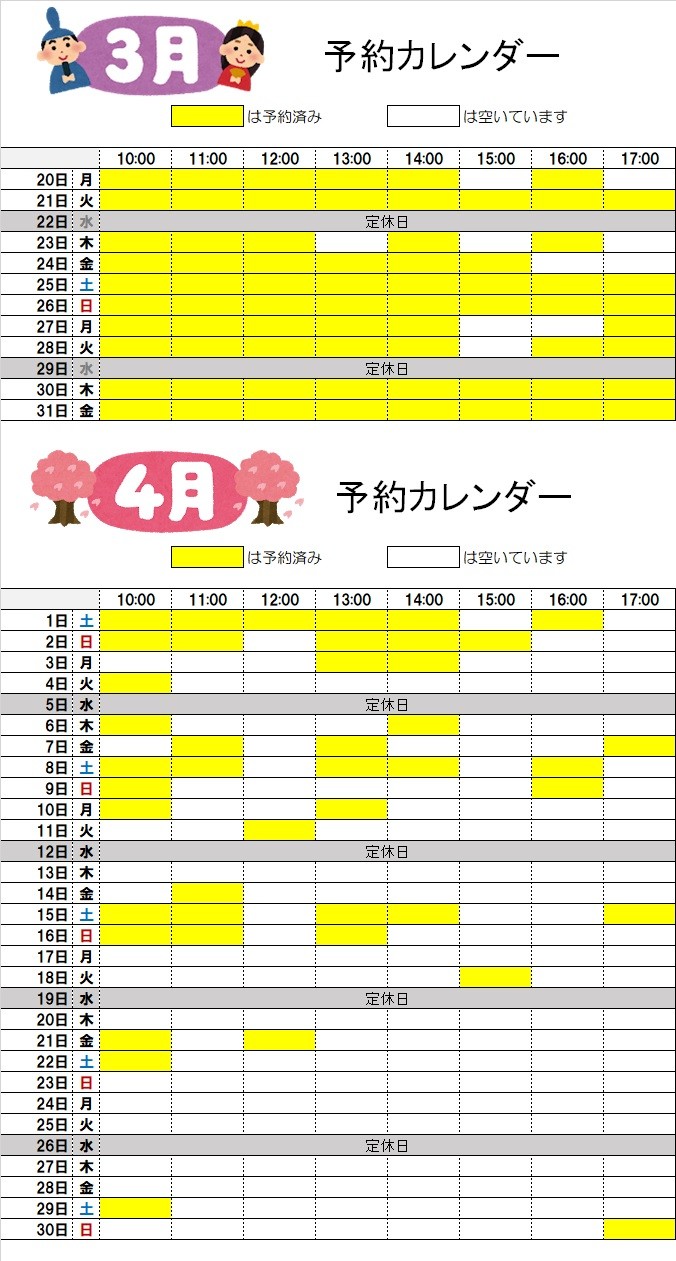 3月20日(月)作業予約状況です ポスト 2023年3月20日 今年は、例年より暖かいので、3月に履き替えをされる方が多いように感じます。 カレンダーを掲載しましたので、履き替え予約の参考にご利用ください。 タイヤ館 上田 住所:386-0014長野県上田市材木町1-9-18 電話番号: 0268-23-8766