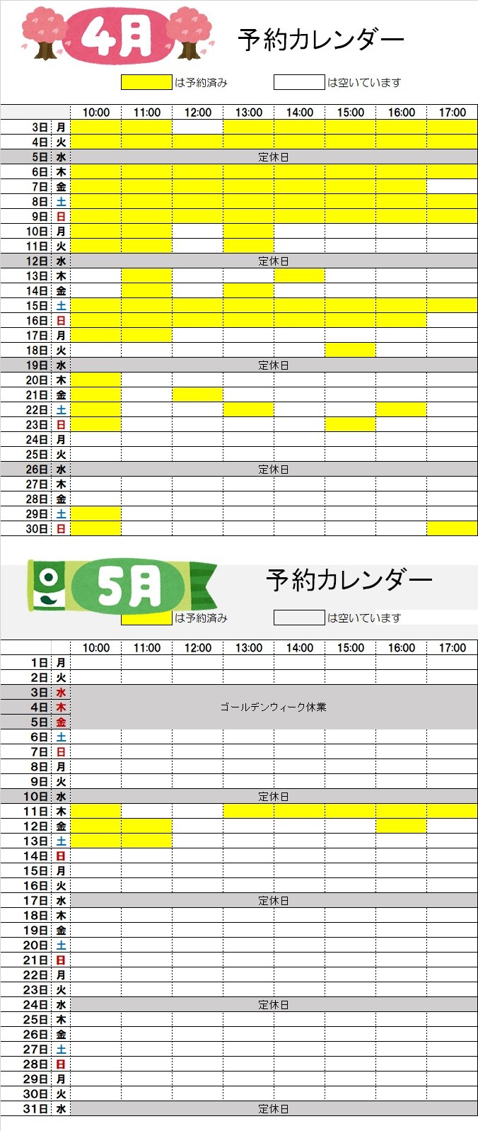 4月3日(月)作業予約状況です ポスト 2023年4月3日 桜に、水仙、チューリップまで咲きました!! 春です!! 履き替え日程を調整中の皆様、作業予約状況のカレンダー更新を致しましたので 予約の参考にしてください。 タイヤ館 上田 電話番号: 0268-23-8766