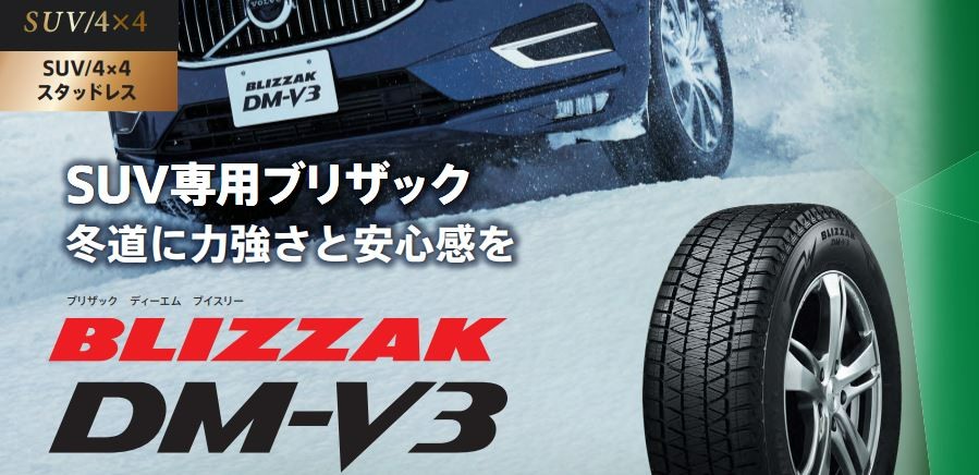 BLIZZAK DM-V3 ポスト BLIZZAK DM-V3 (ブリザック ディーエム ブイスリー) SUV専用ブリザック。 様々な冬道に力強さと安心感を与えます。 一般道だけでなく、レジャーや山道にも お出かけされる方に、おススメです。 関連情報もあわせてご覧ください BLIZZAK DM-V3 カテゴリ:商品情報 タイヤ関連