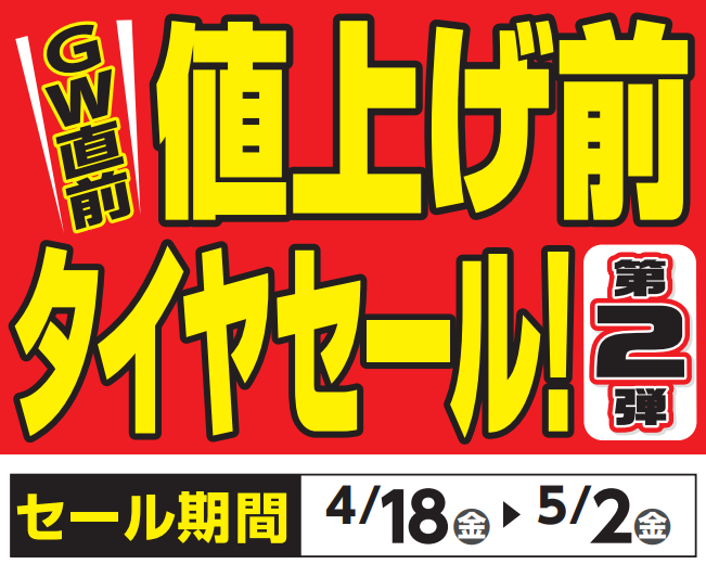 GW直前 値上げ前タイヤセール 4/18~5/2