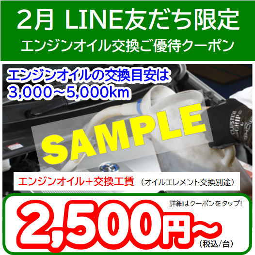 今月のLINE友だちクーポンは【エンジンオイルご優待】