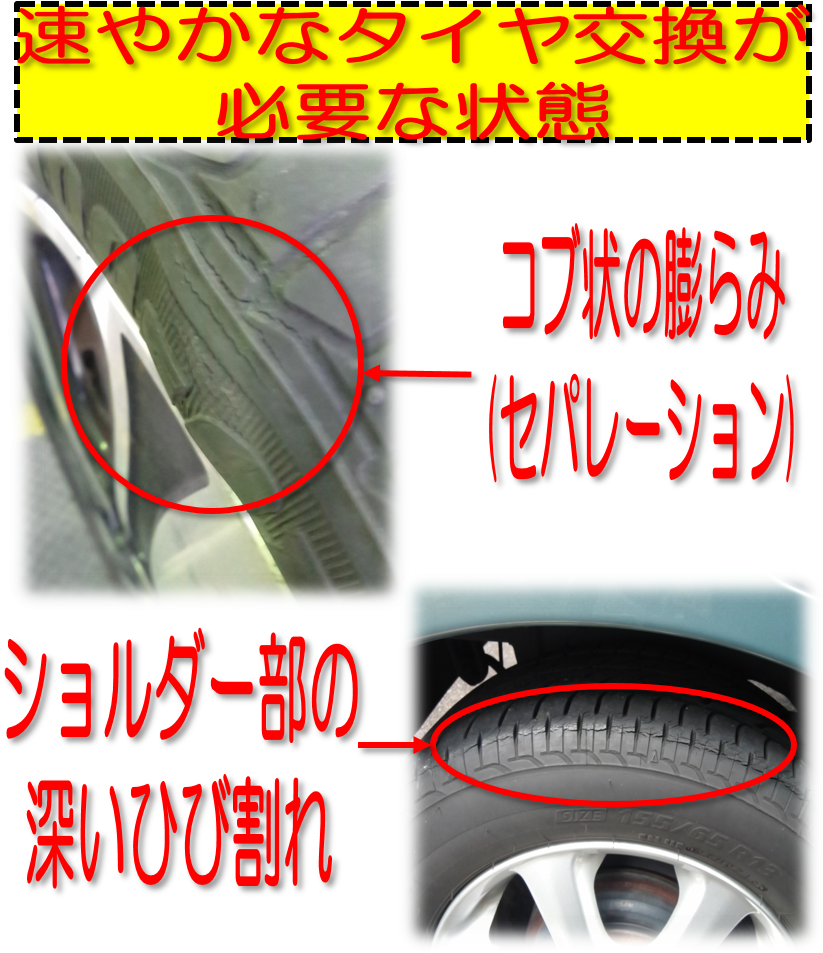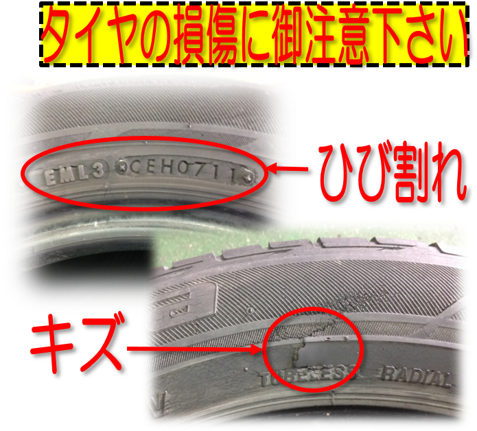 タイヤのひび割れ・損傷にご注意下さい(´・ω・`)