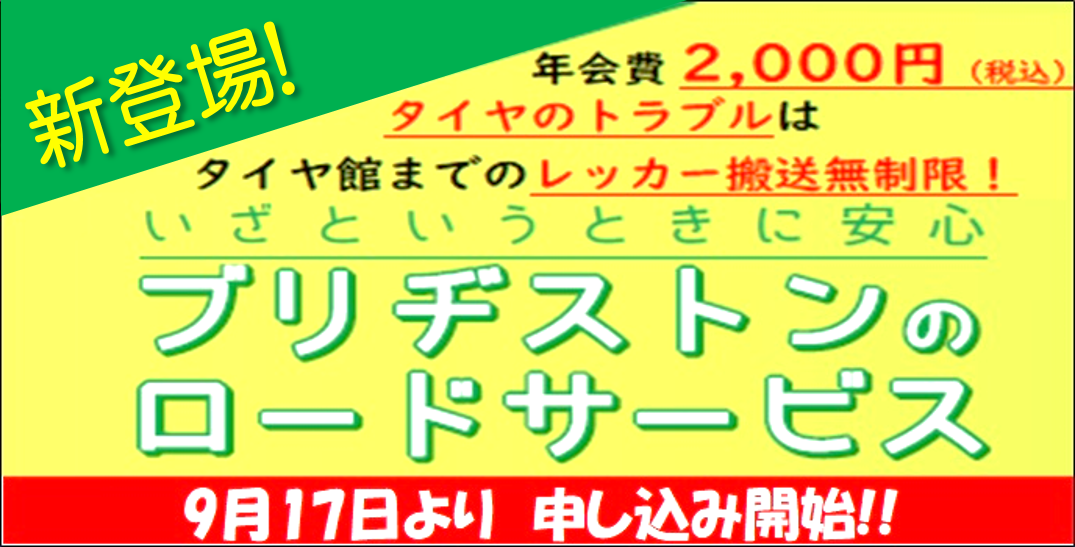 本日より入会受付開始!!「ブリヂストンのロードサービス」