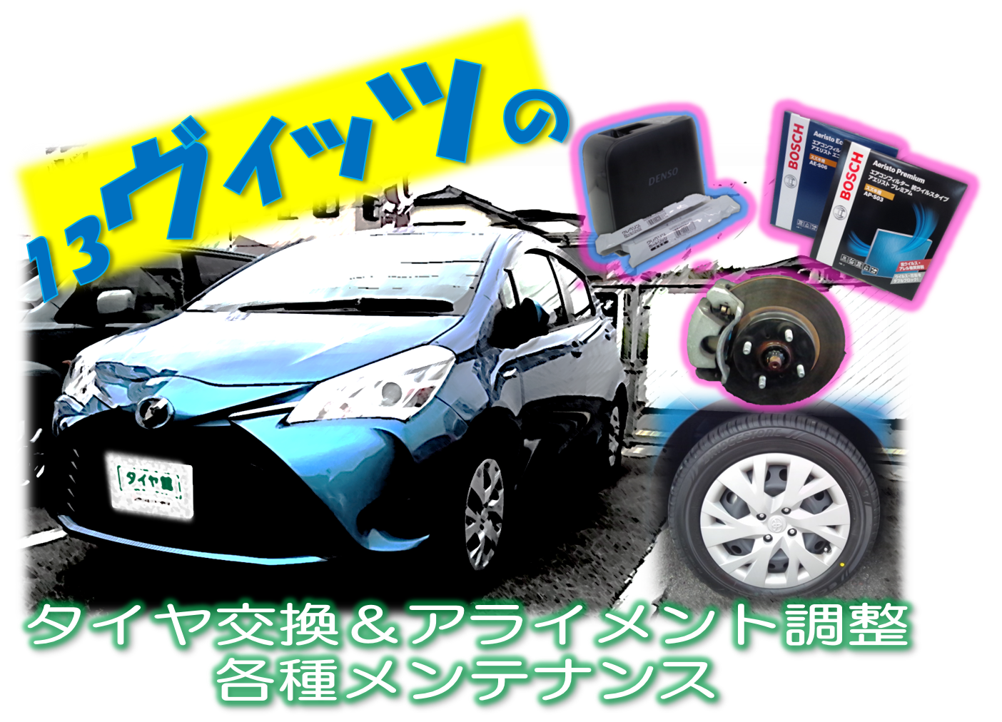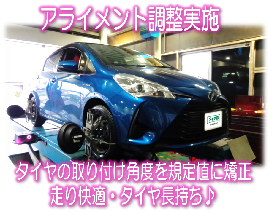 13ヴィッツのタイヤ交換&アライメント調整・各種メンテナンス d(゚∀゚d)