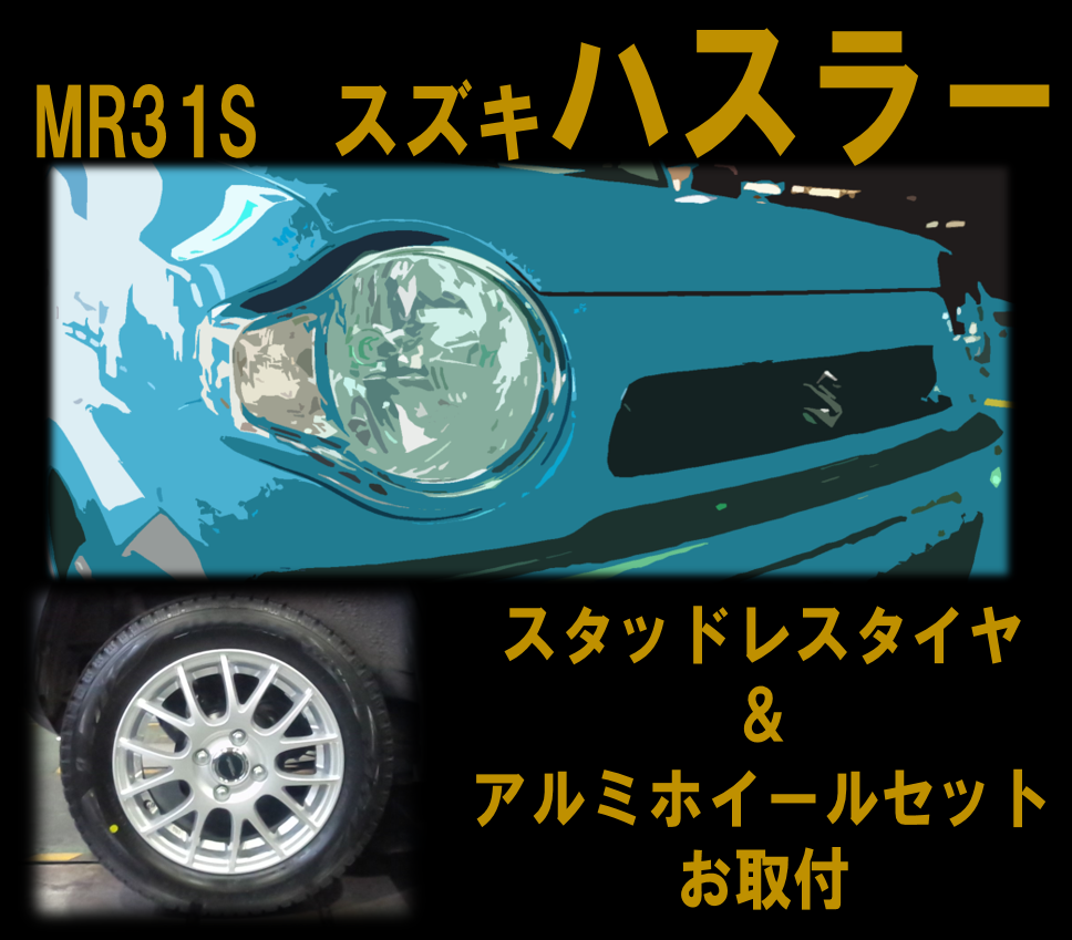 MR31Sハスラーにスタッドレスタイヤ&アルミホイールSETお取付 (・ω・)ゞ