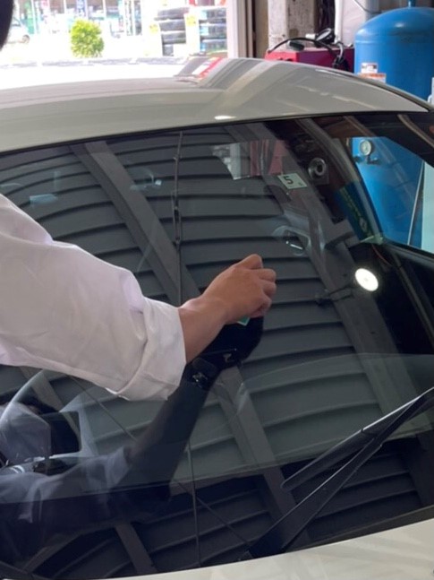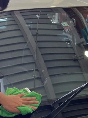 そして専用の溶剤を使って窓ガラスにまんべんなく塗布していきます。