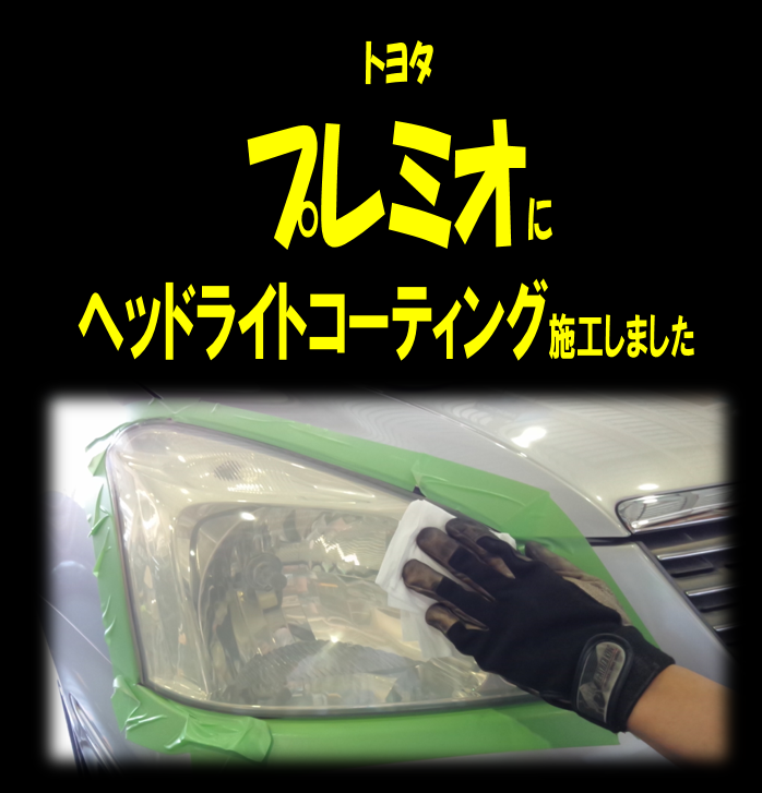 トヨタプレミオにヘッドライトコーティング施工しました!