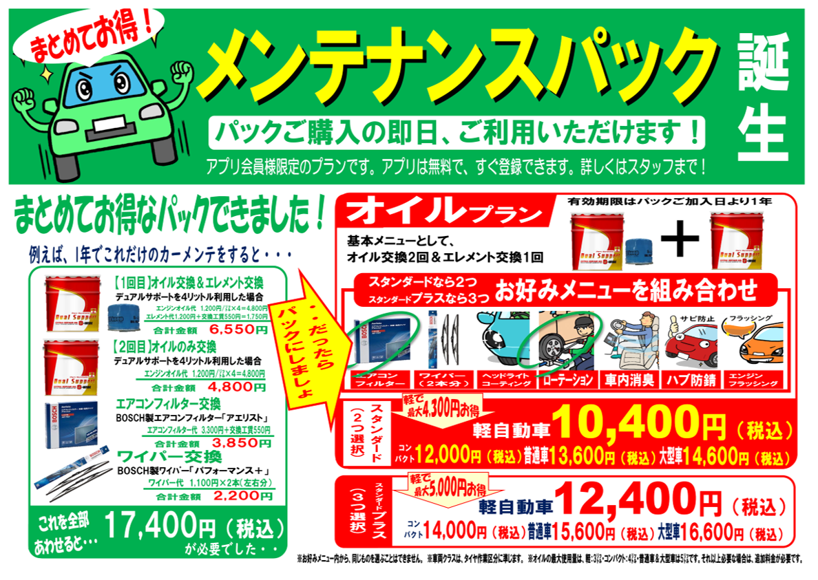 エンジンオイル交換・ATF&CVTF交換・バッテリー交換・ワイパー交換