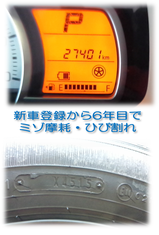 タイヤの摩耗とひび割れのため