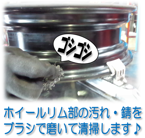 ホイールのリム部分を綺麗に磨きます