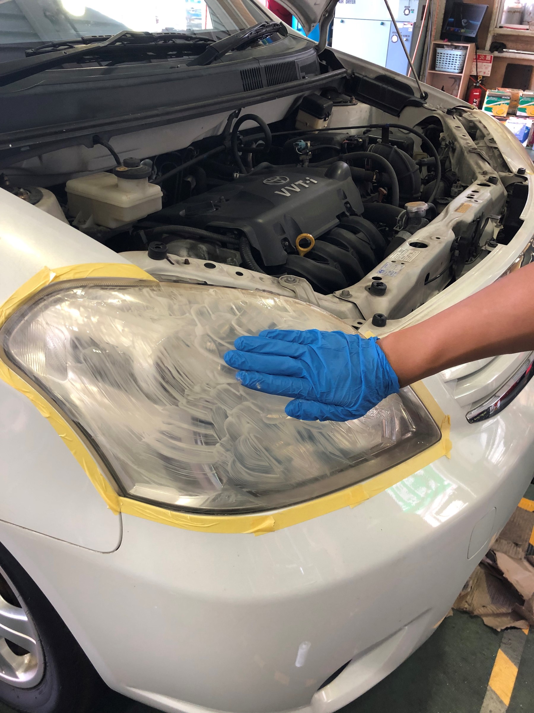本日はトヨタのラウムに今人気のヘッドライトコーティングしたので
