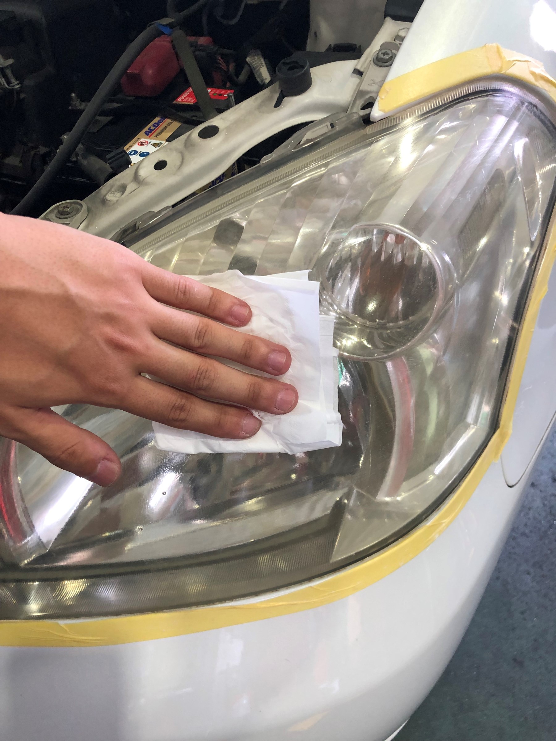 塗っていきます。紫外線等によるヘッドライトのダメージを