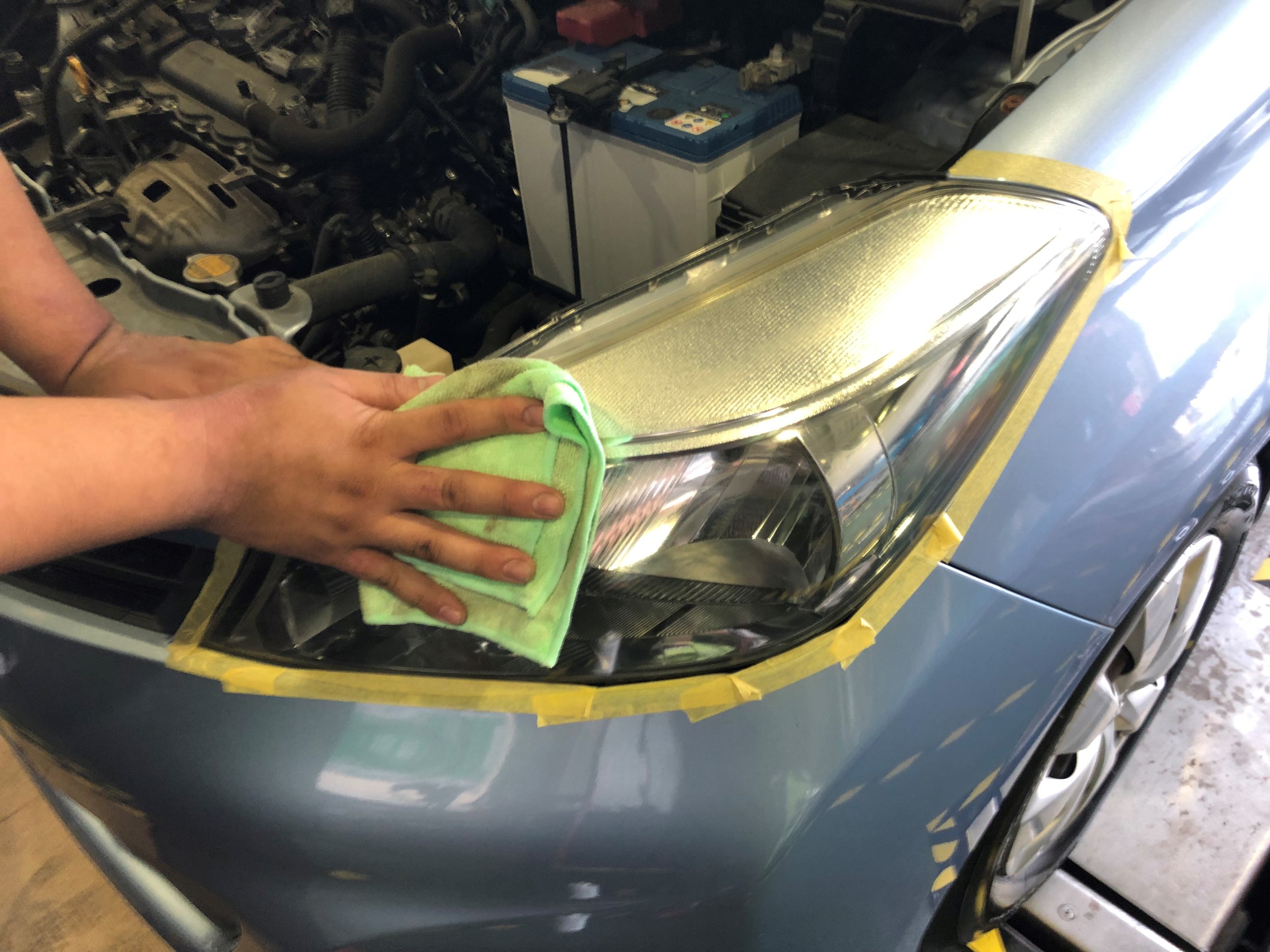 本日はトヨタのヴィッツにヘッドライトコーティングを