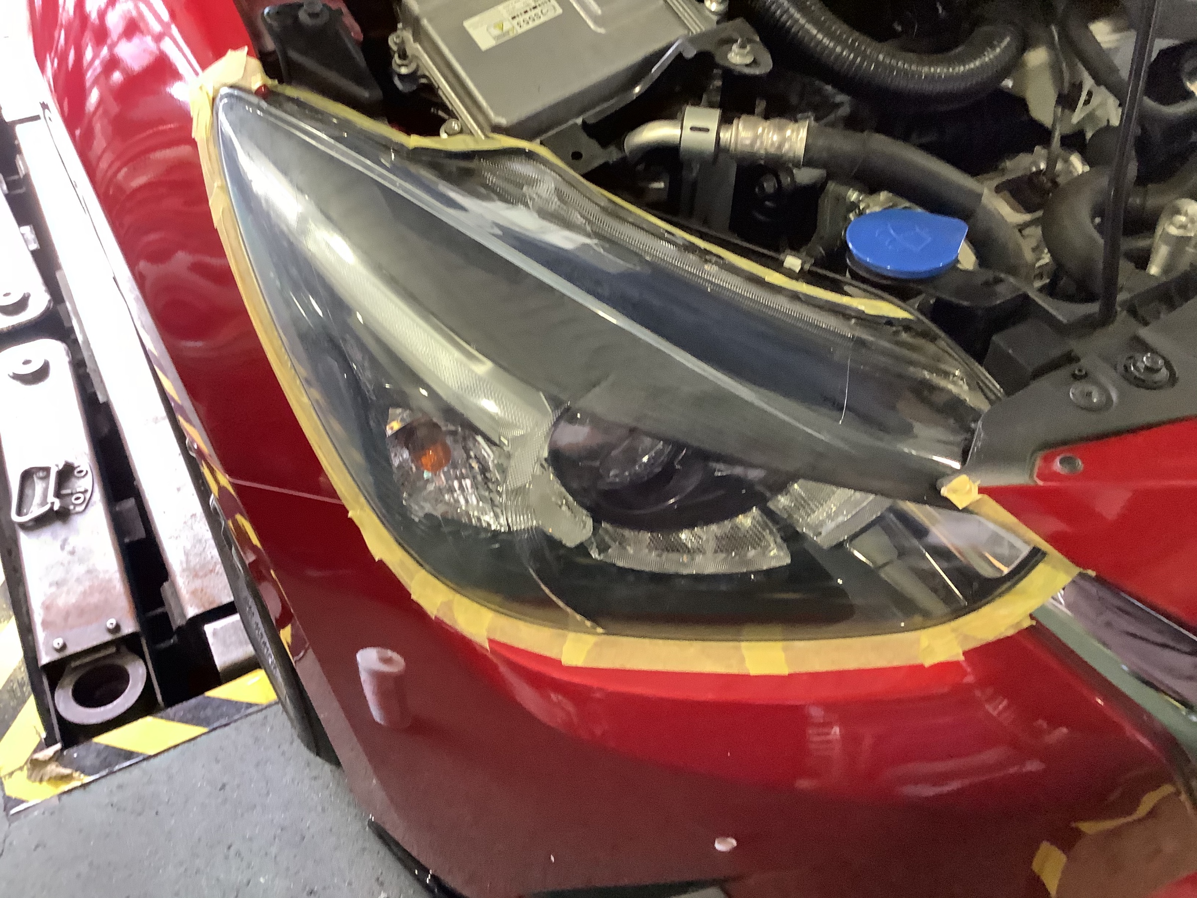 本日はマツダのデミオにヘッドライトコーティングをしたのでご紹介いたします!