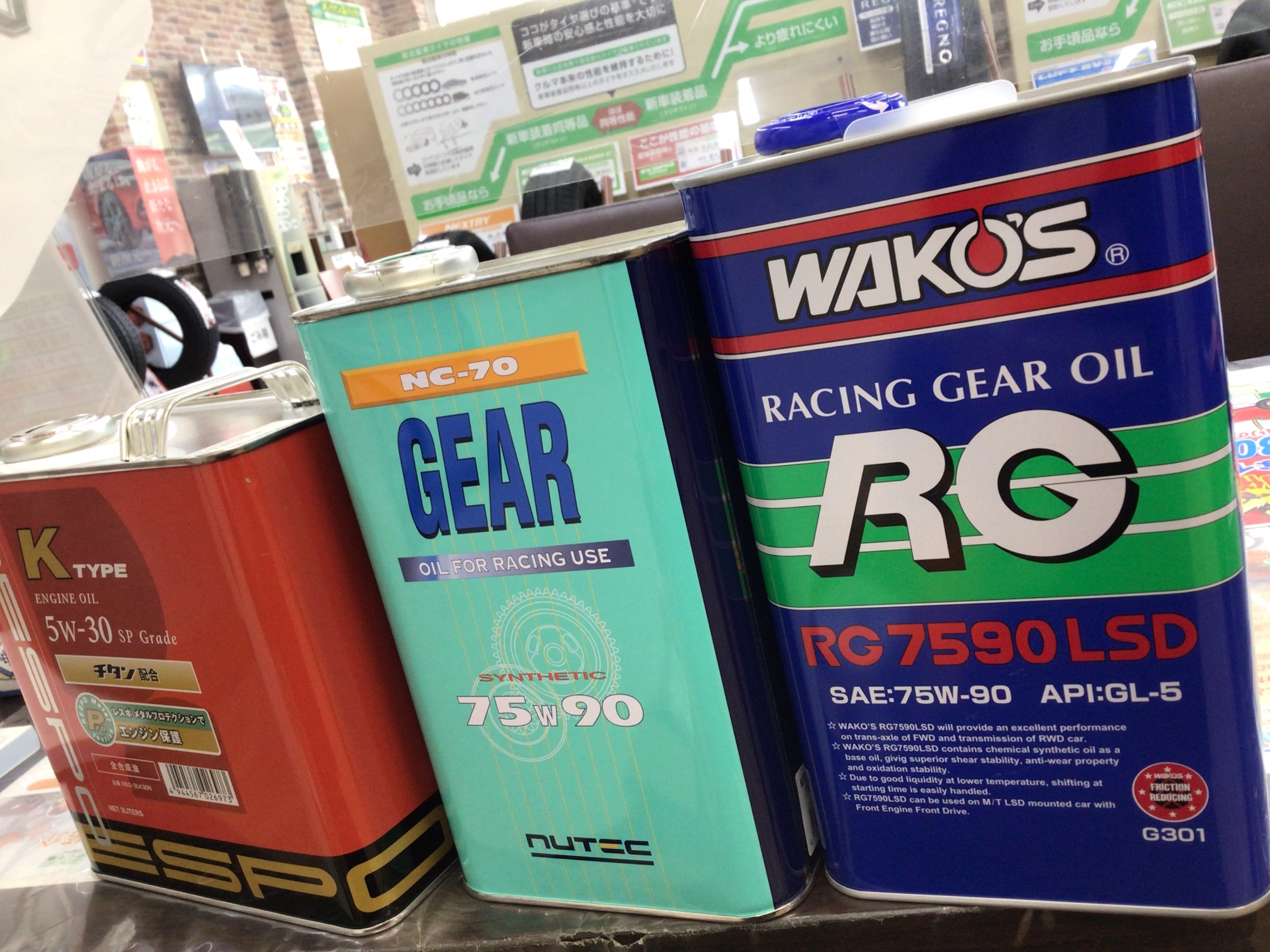 今回入荷したオイルは、「レスポ」「ニューテック」「ワコーズ」の三種類!