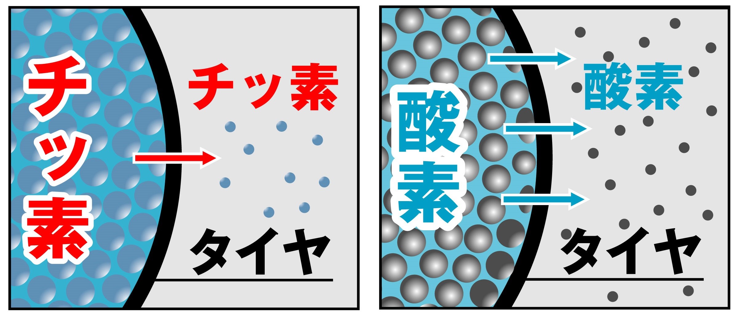 ● 窒素は酸素よりもタイヤを通過しにくい(抜けにくい)性質なので、
