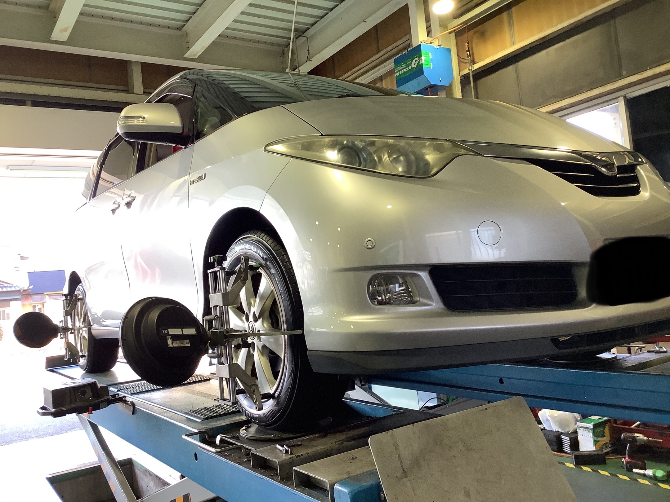 今回はトヨタのエスティマにタイヤ交換とアライメント調整をしたので