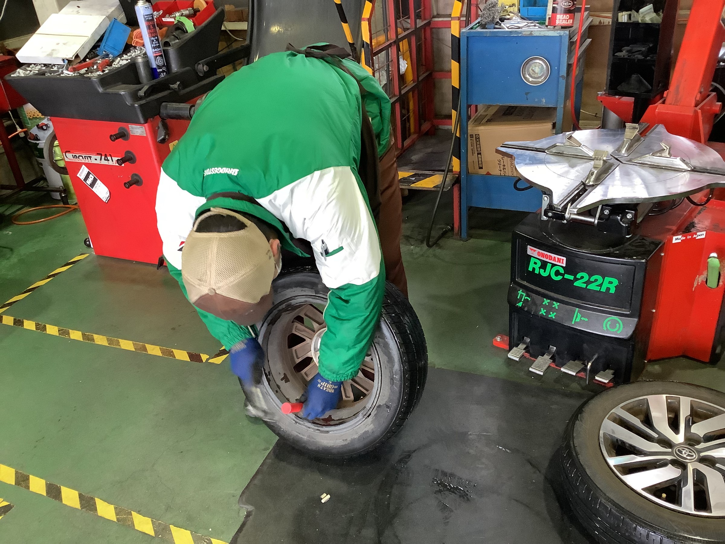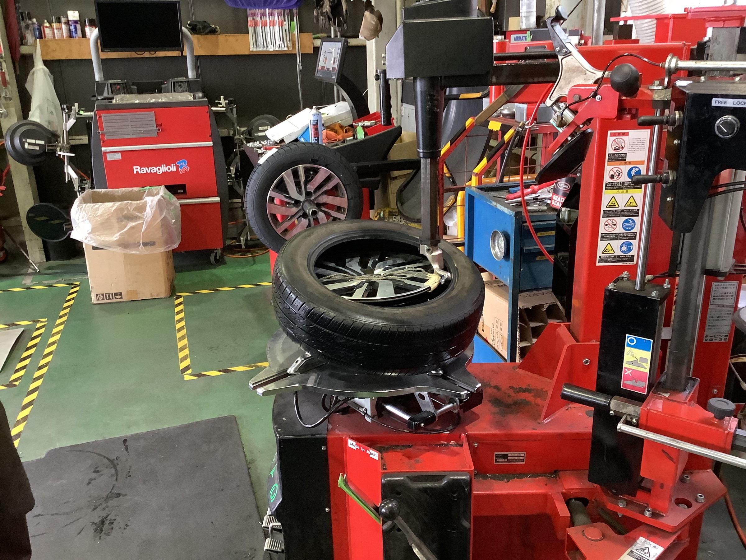 タイヤチェンジャーを使い丁寧にタイヤを外していきます。