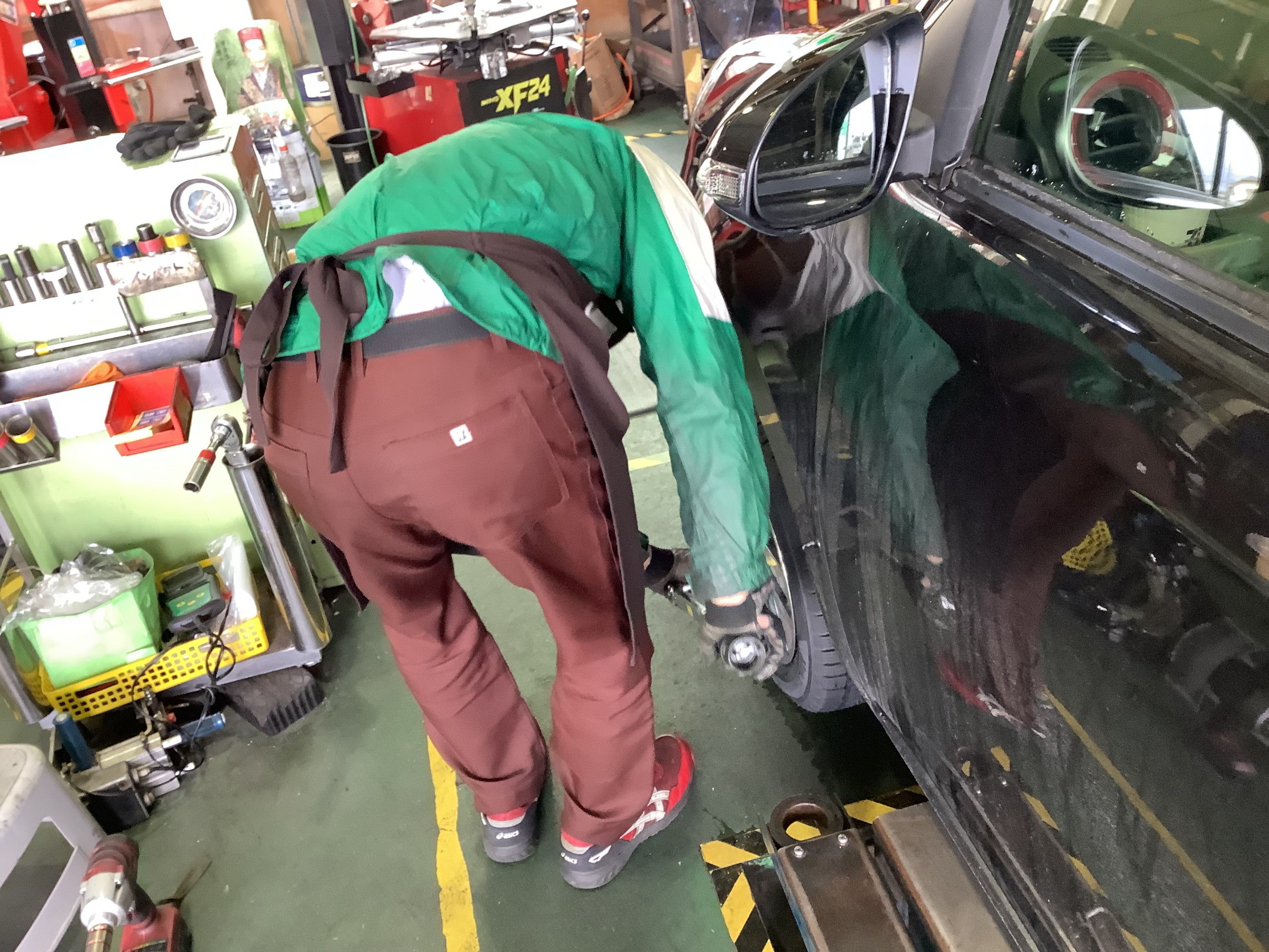 タイヤを車両につけ終わったら最後に専用工具で