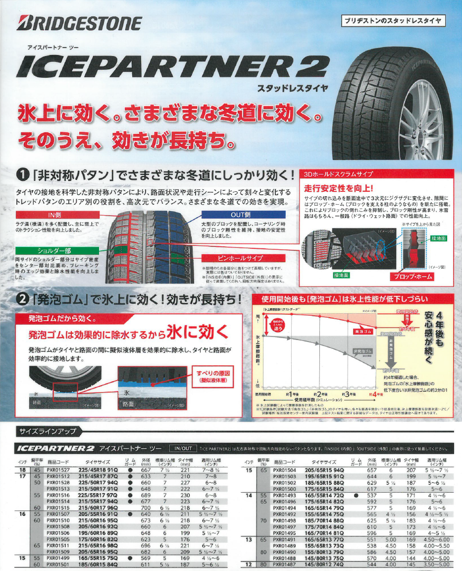 今回はアイスパートナー2というスタッドレスタイヤを取り付けました。