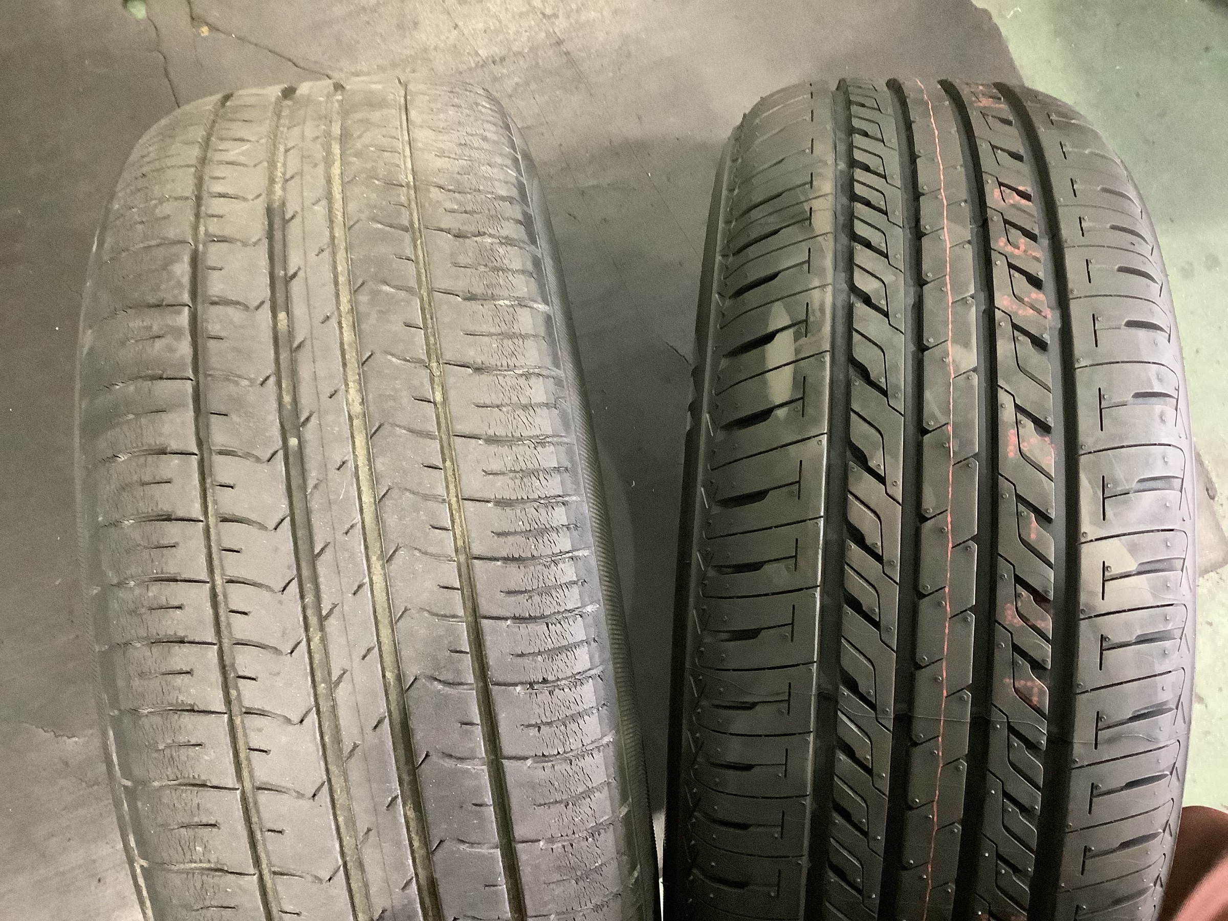 右側の新品と比較するとかなり溝が減ってしまっていますね‥