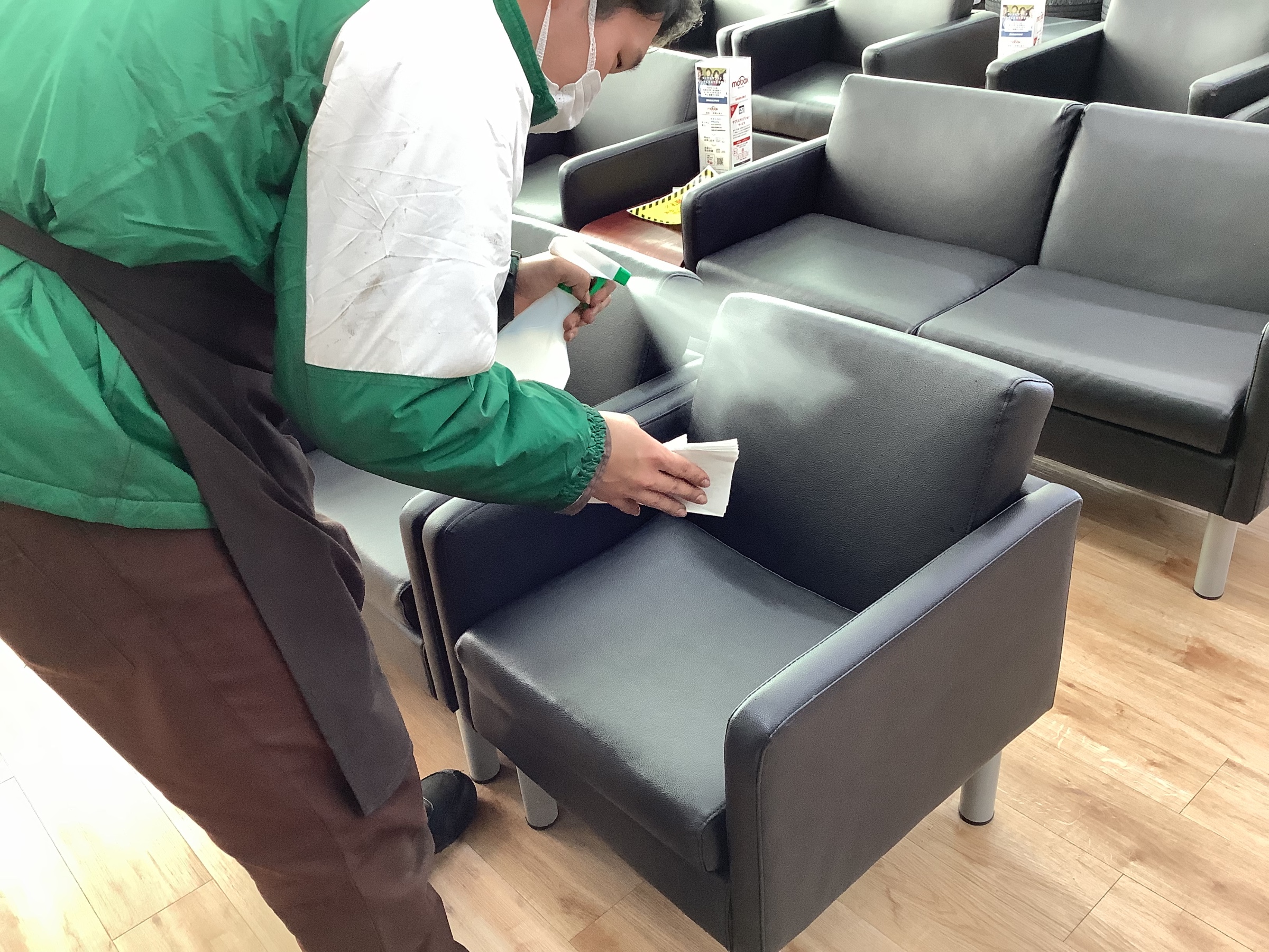 タイヤ館梅坪店では感染対策として、定期的に店内の除菌をしています!