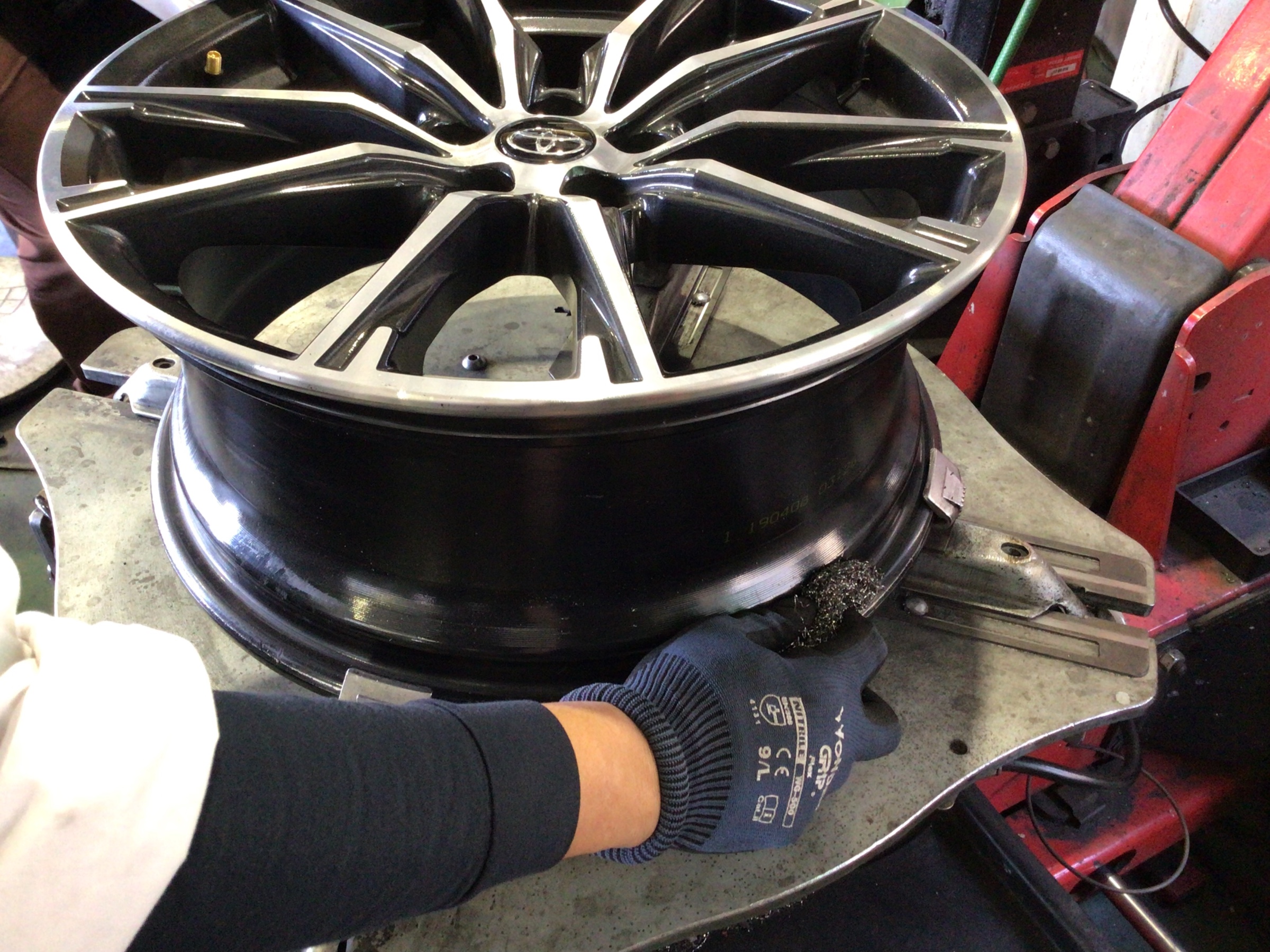 2枚目の写真はホイール内部をきれいに磨き、空気が漏れてしまうのを防ぎます!