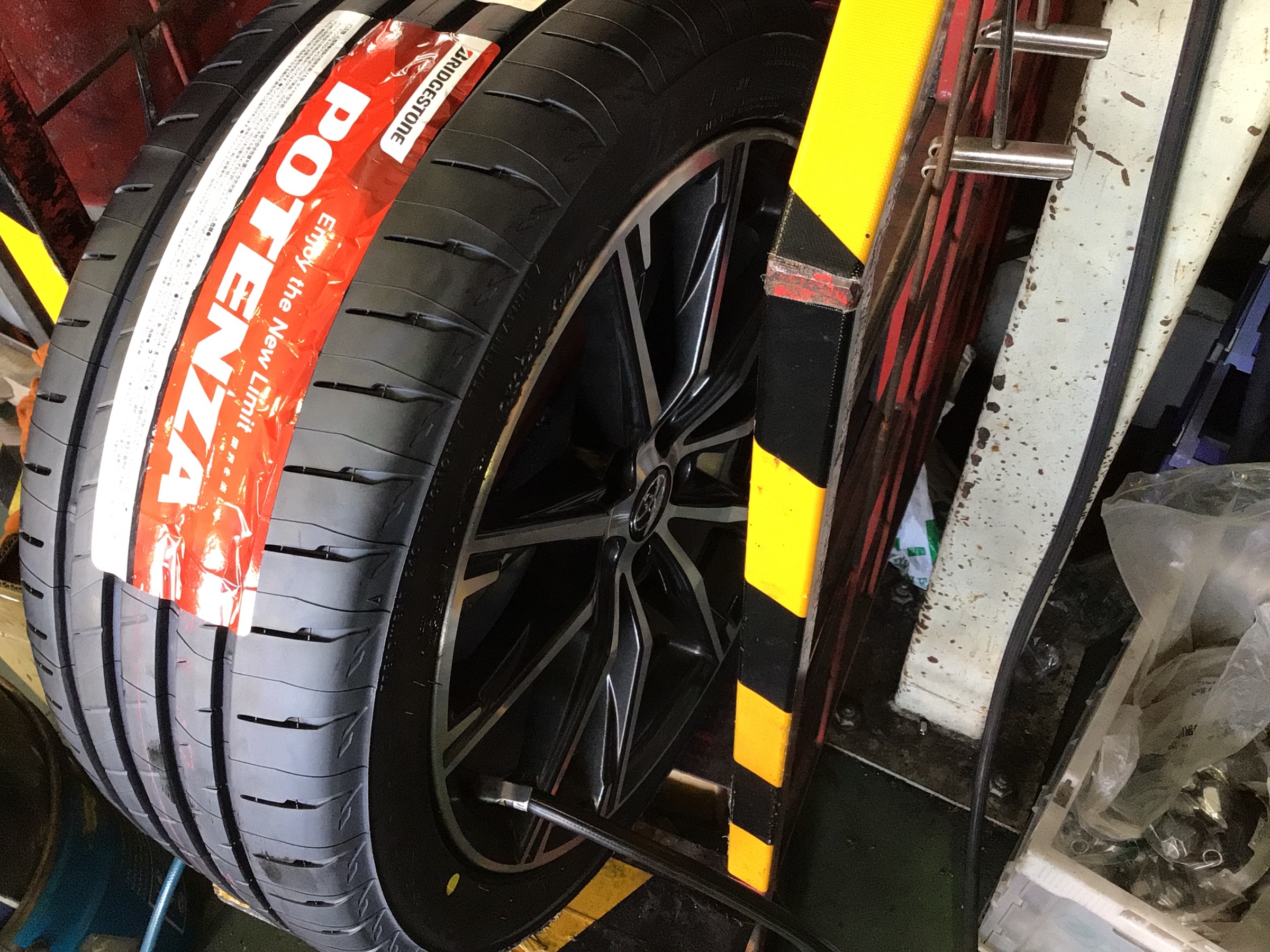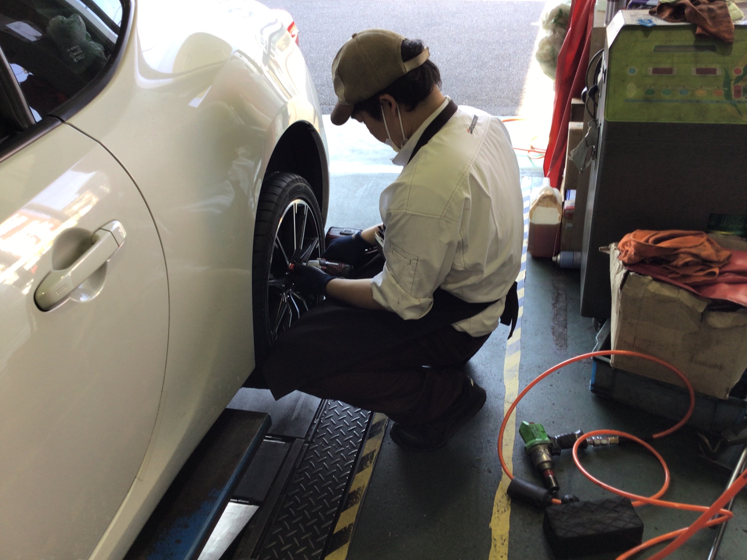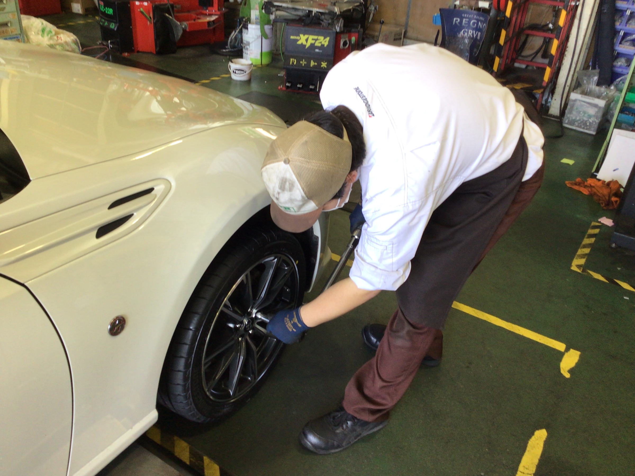 タイヤを車両に取り付け、規定の力で締め付けて作業終了です!!