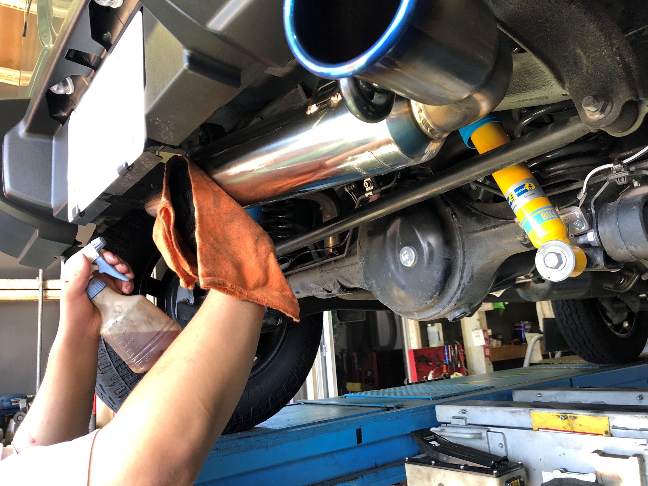 マフラー部や下回りの金属部を隅々まで施工させていただきます!