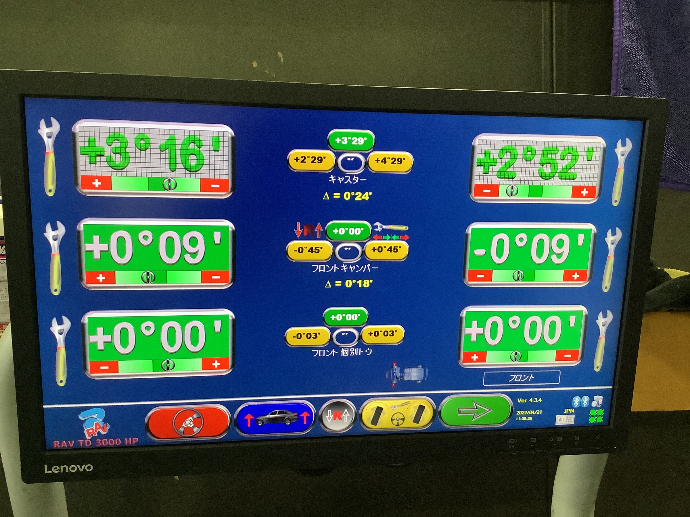 今回はトヨタのルーミーにアライメント調整を