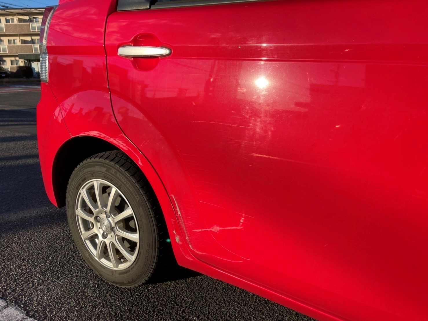 リアフェンダー周りにこすり傷やへこみができてしまっています!