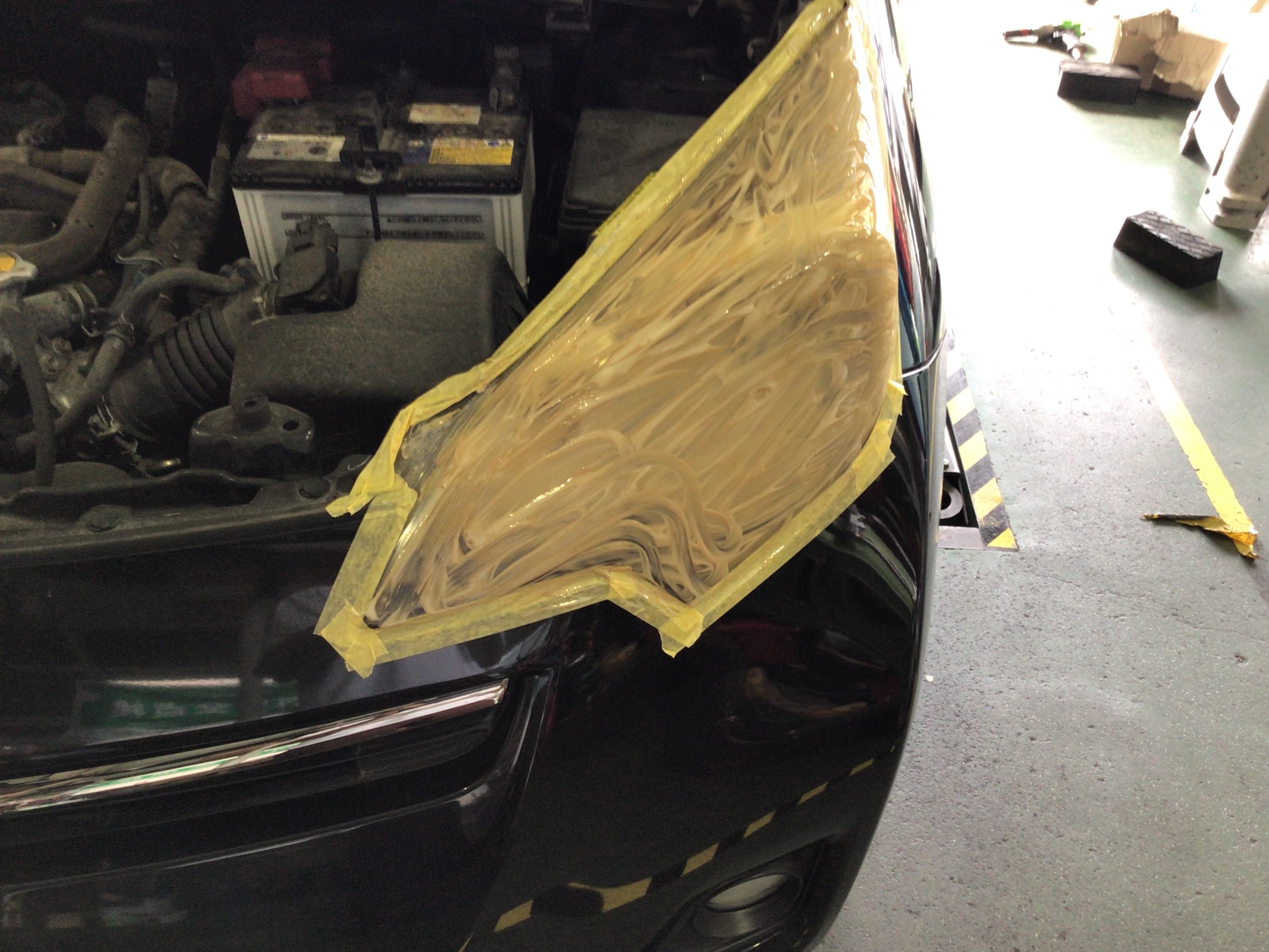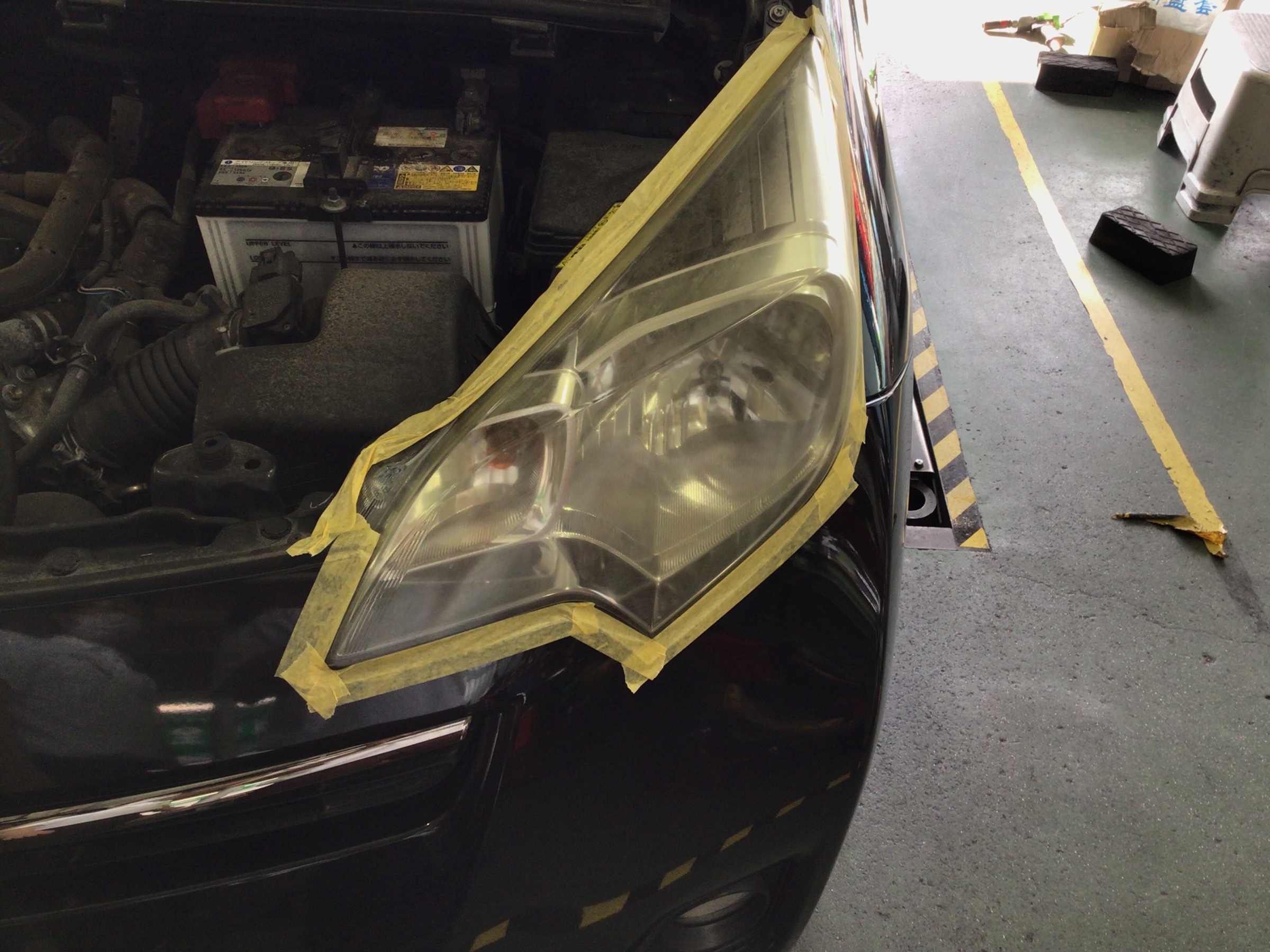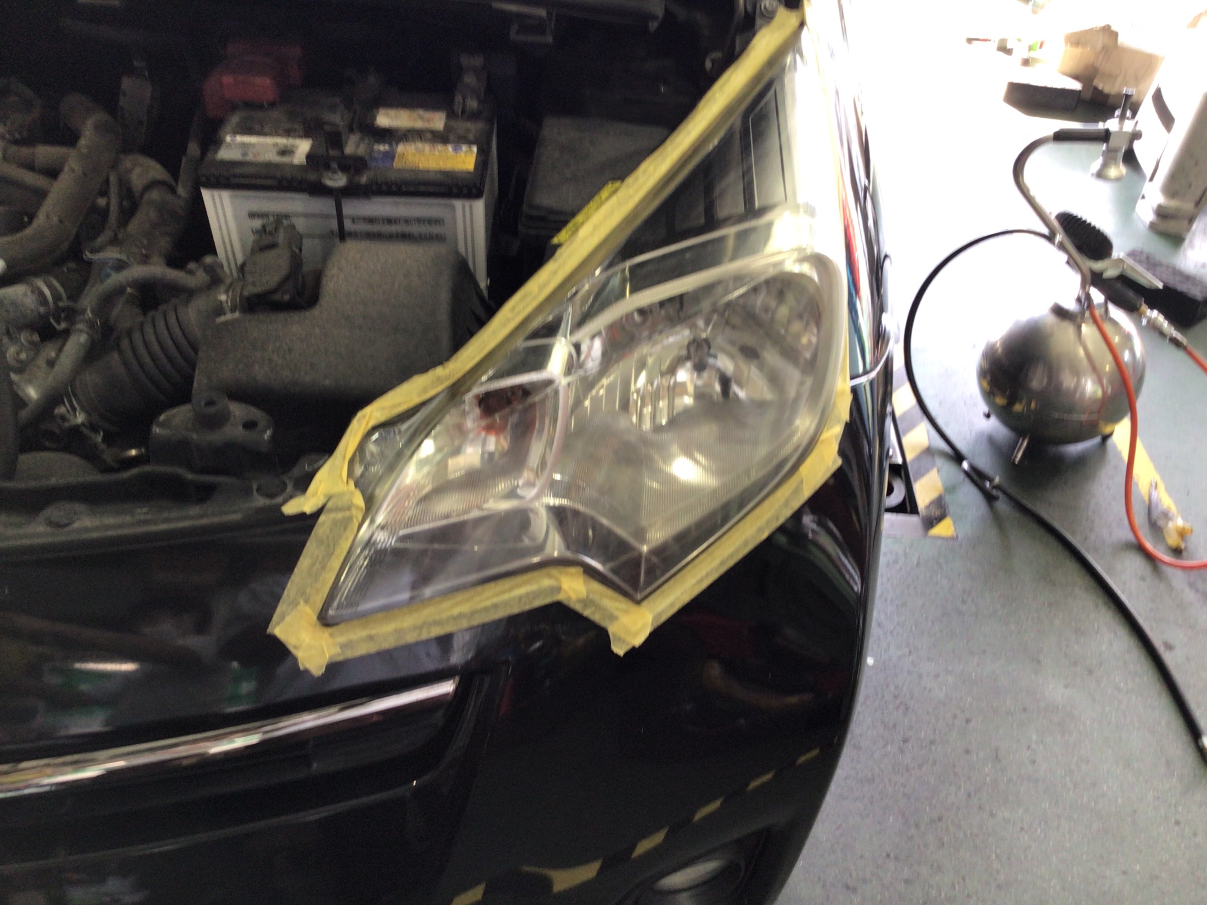 まずはヘッドライト周りを綺麗にマスキングしていきます!