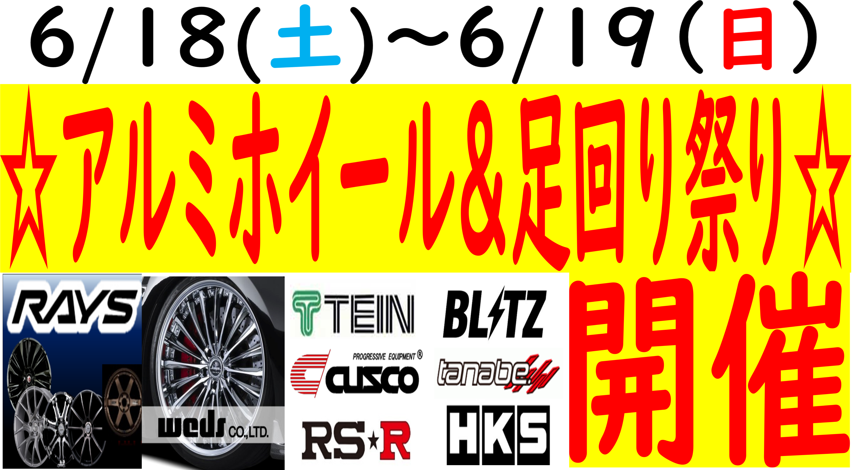 1日目終了!!【6/18(土)~6/19(日)】アルミホイール&足回り祭り開催!!!