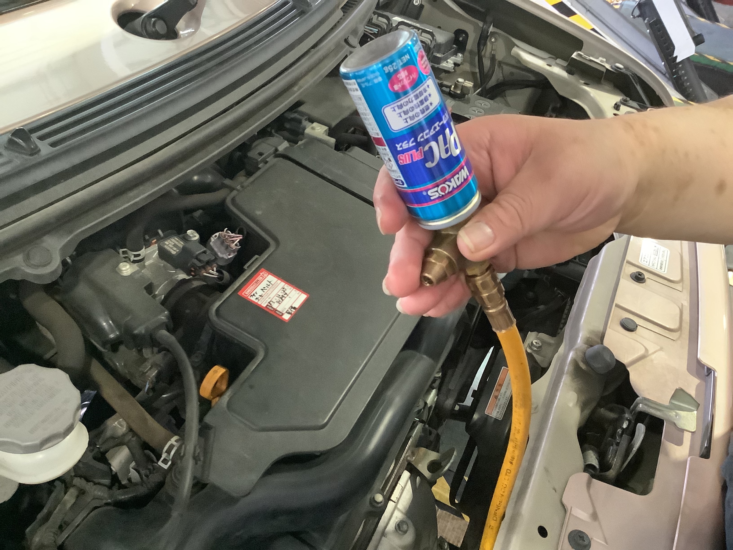 Low側のキャップをしめ、ボンネットを閉めて作業終了です!