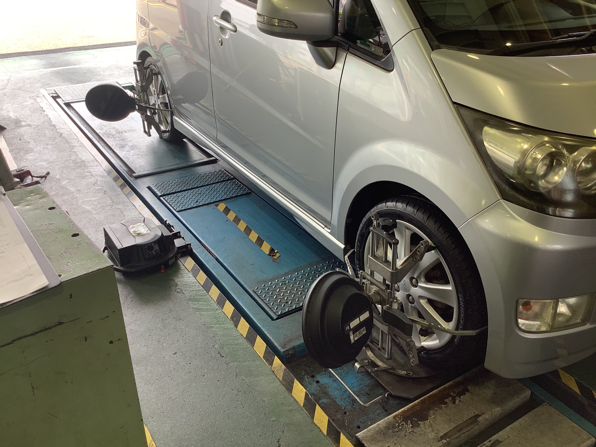 今回はダイハツのムーヴカスタにタイヤ交換とアライメント測定・調整をしました。