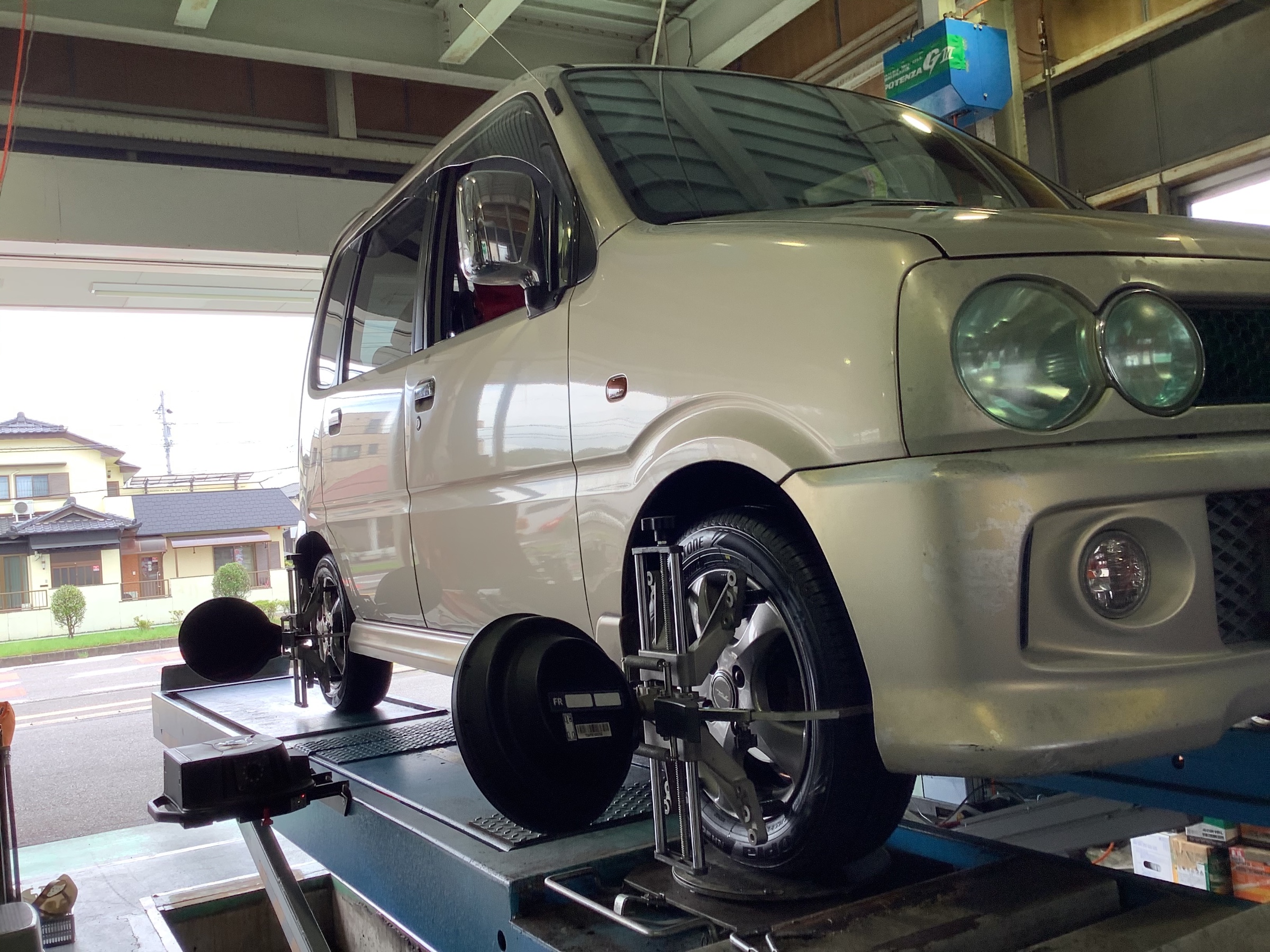 今回はダイハツのムーヴにタイヤ交換とアライメント調整を