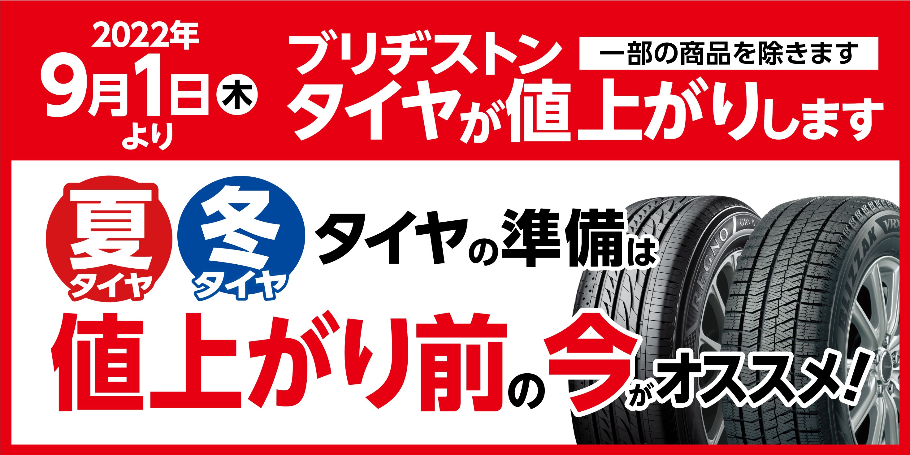 また9月1日よりブリヂストンタイヤが値上がり予定です。