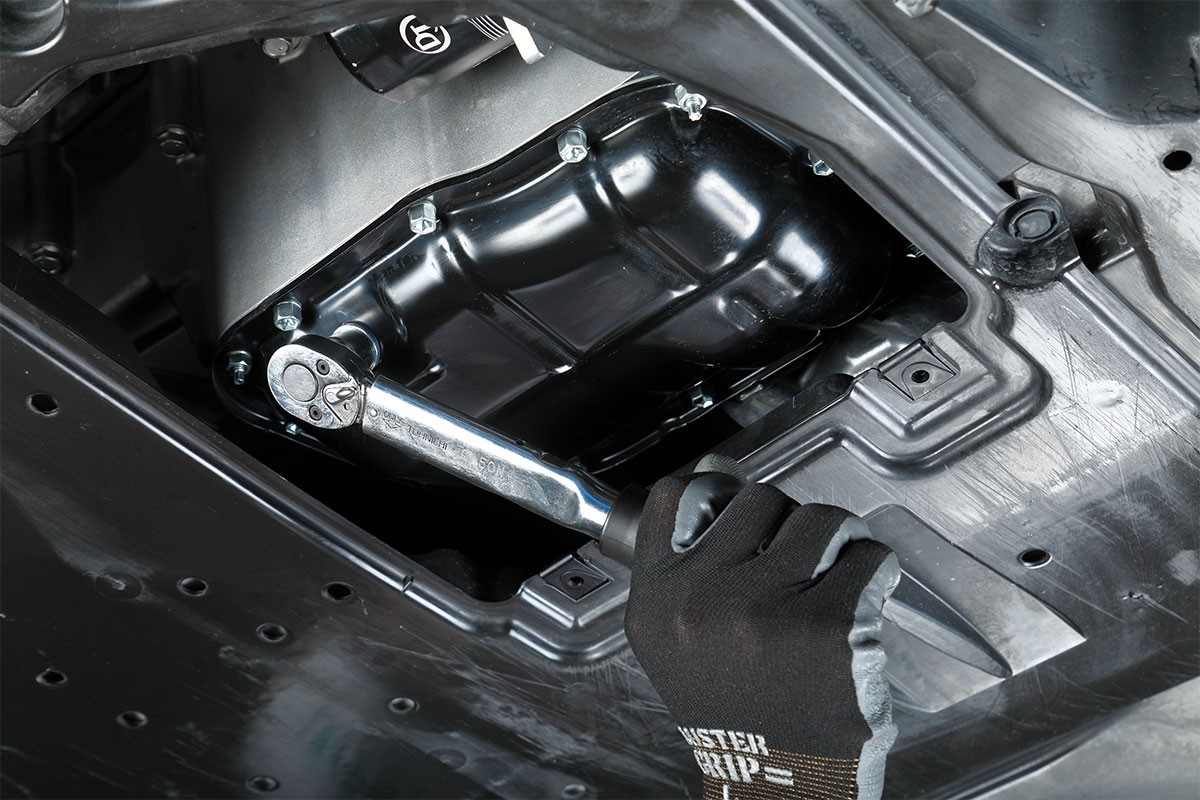最後にドレンボルトからのオイル漏れなどの最終チェックを行います。