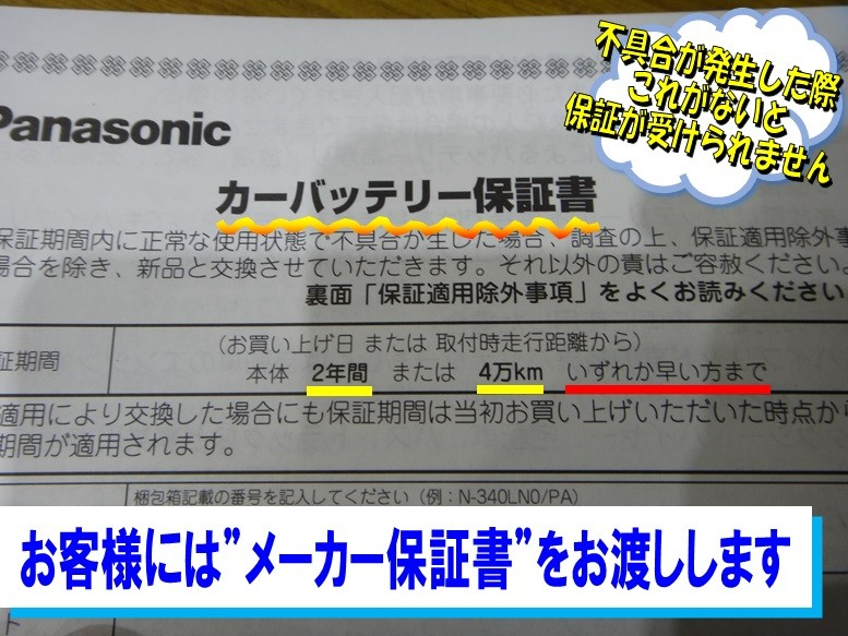 当店で取り扱うカーバッテリーは、全品”メーカー保証”付きです。