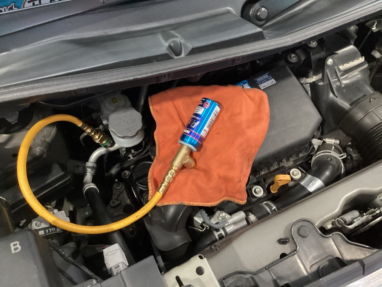 本日は、夏場お馴染みエアコン添加剤の作業です!