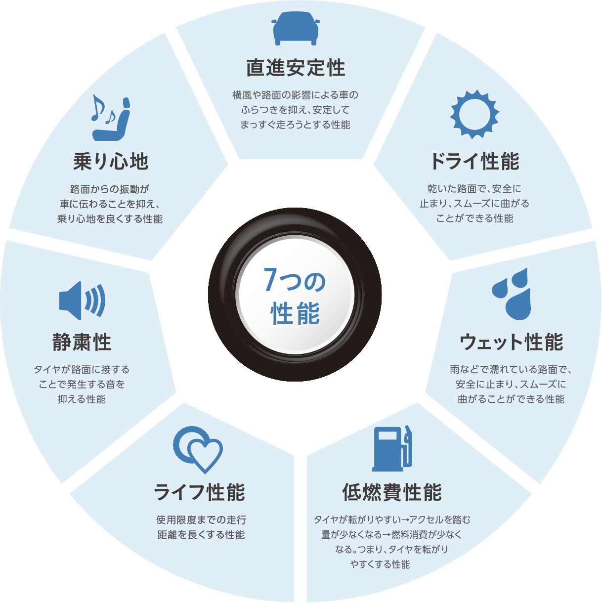 『REGNO』は、ブリヂストンが考えるタイヤに大切な7つの性能の、