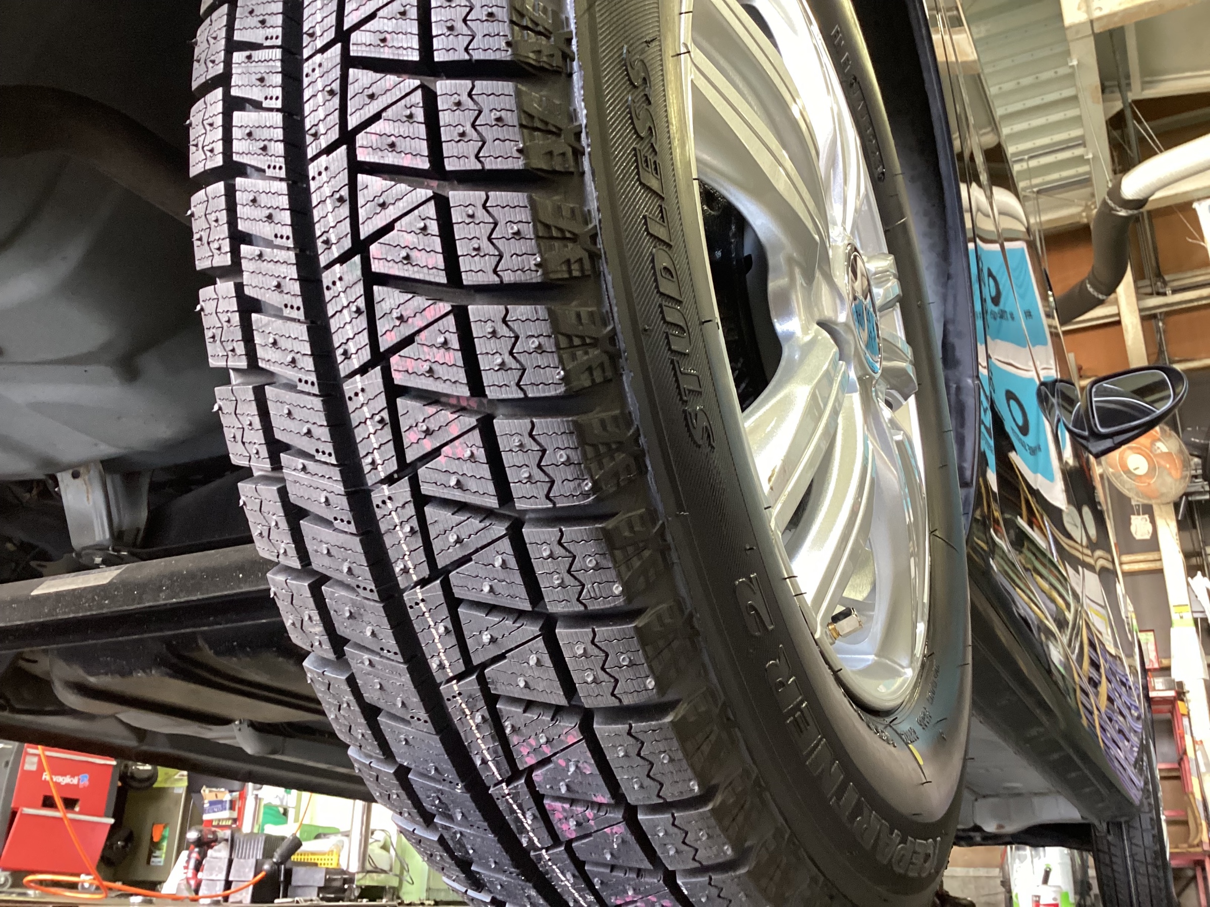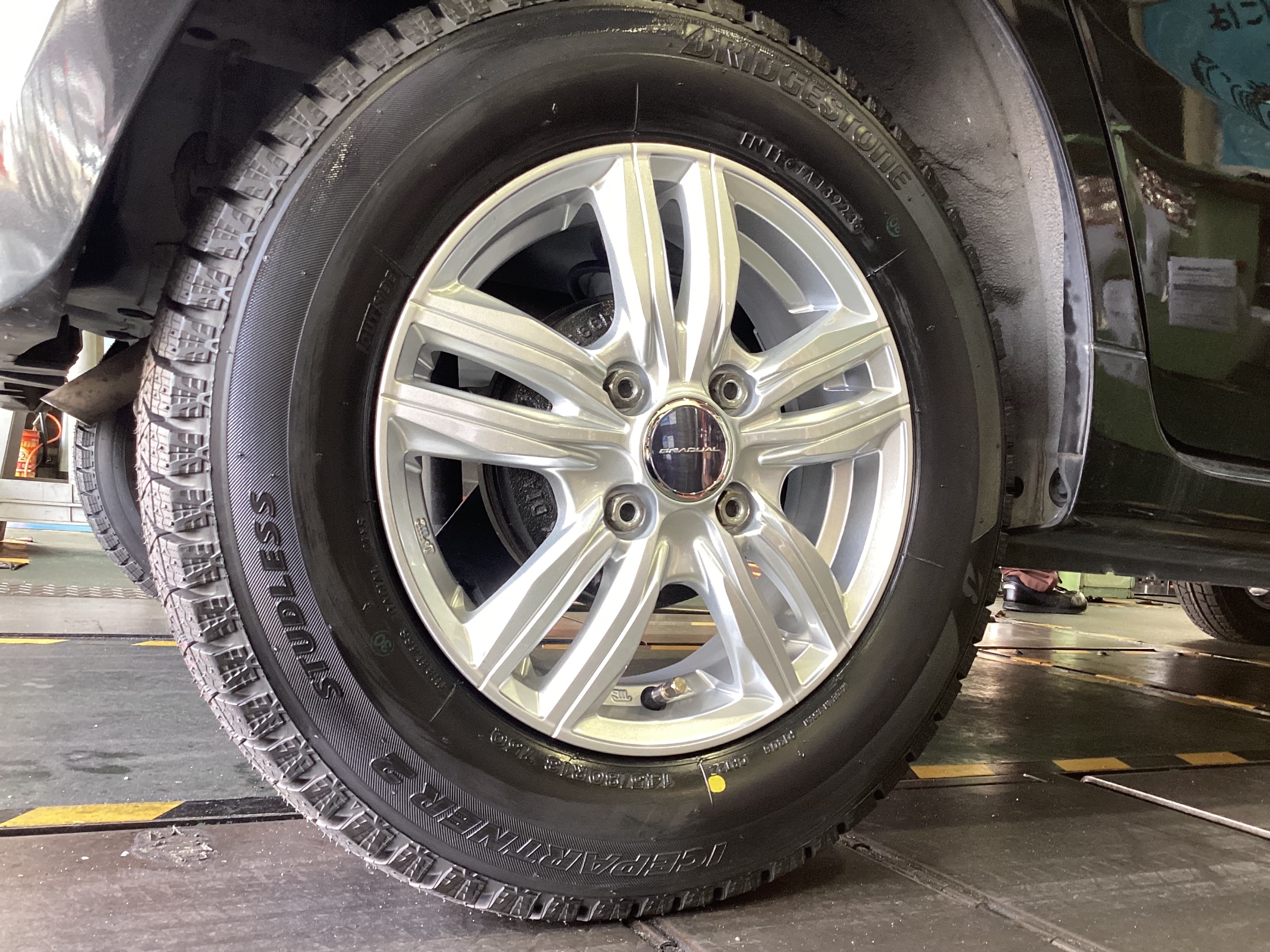 【ダイハツ・ミラ】スタッドレスタイヤアルミホイールセット交換作業(ブリヂストン ICEPARTNER2・GRADUAL DS25W)