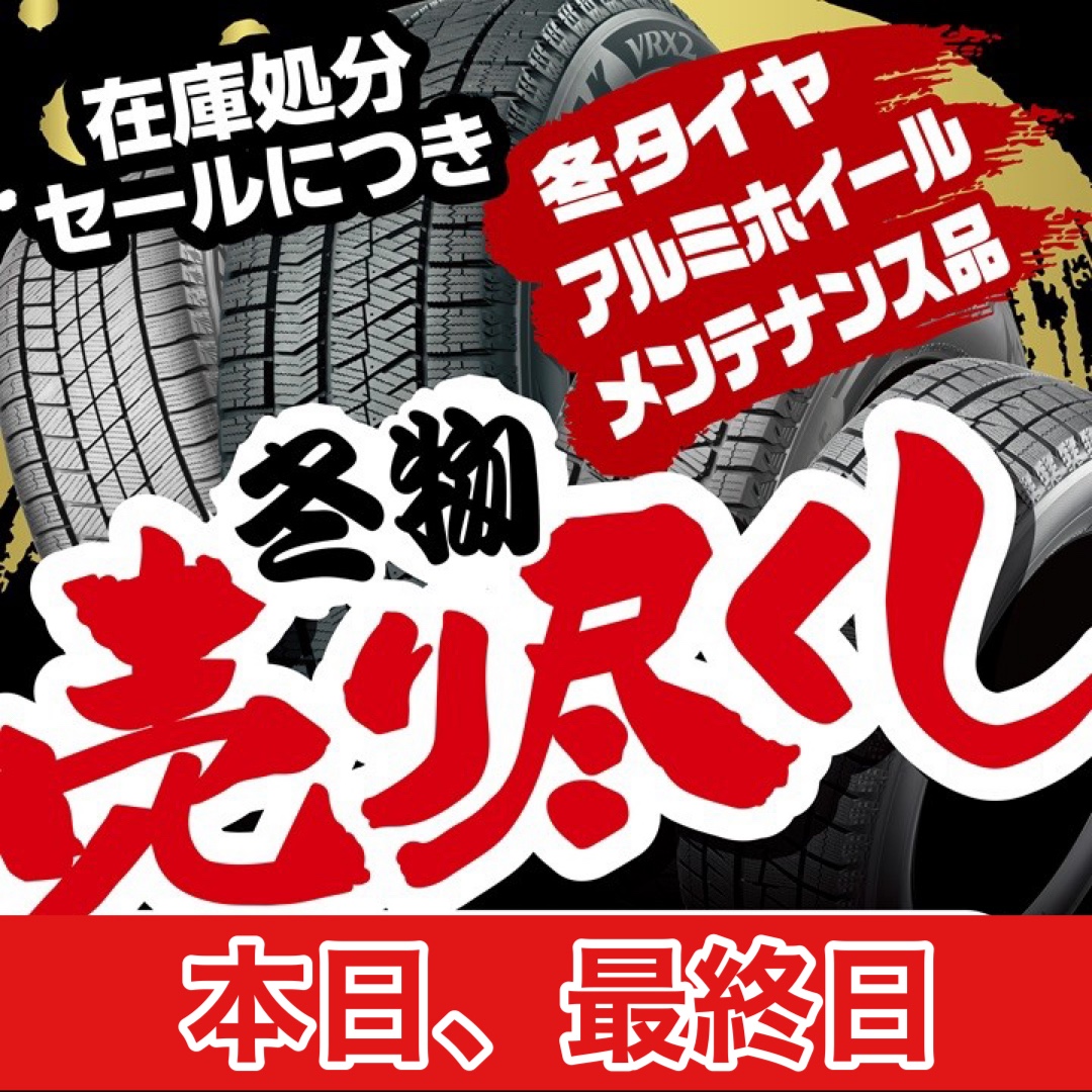 ブリヂストンタイヤが4本最大15,000円引きの特別割引も本日が最終日です。タイヤを買うなら是非、今日中に!